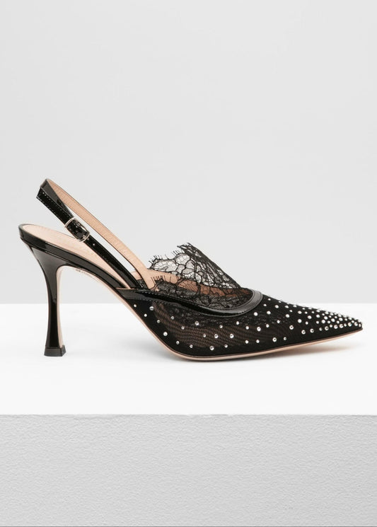 Escarpins Slingback Madame en noir - Dentelle De Calais Couture