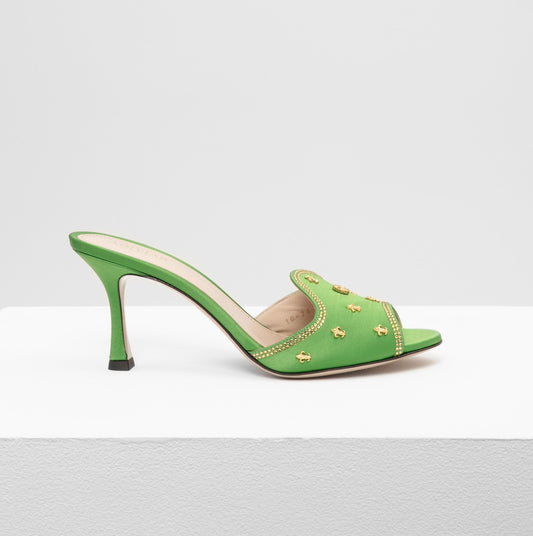 Mules à talon Chance en vert émeraude - Ornées d’or 24 carats