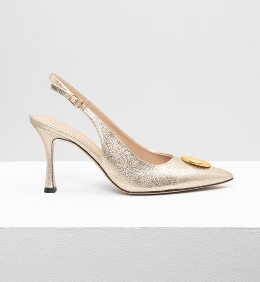 Escarpins Slingback Impératrice dorés - Ornés d’or 24 Carats