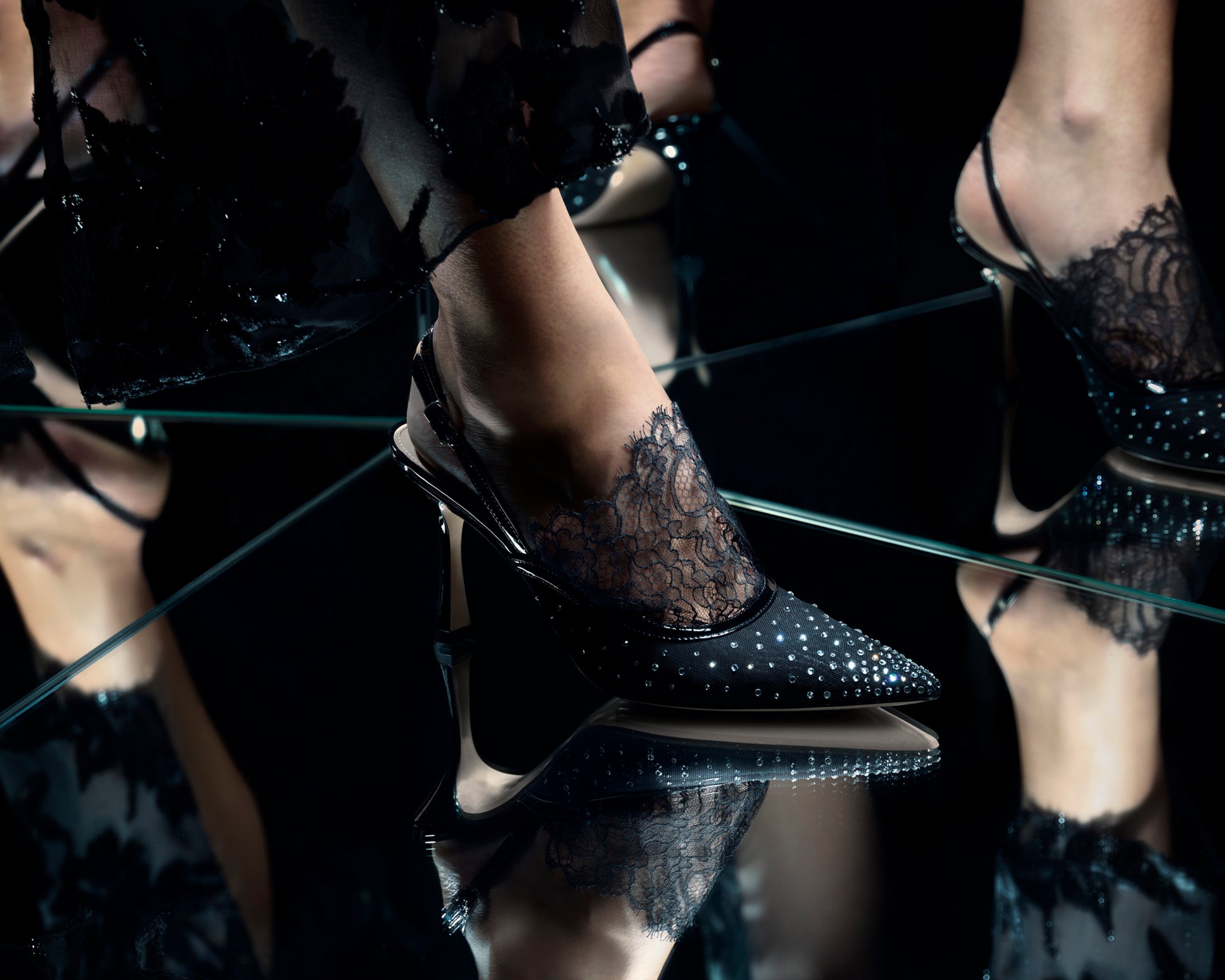 Escarpins Slingblack Madame en noir - Dentelle De Calais Couture Élevée.