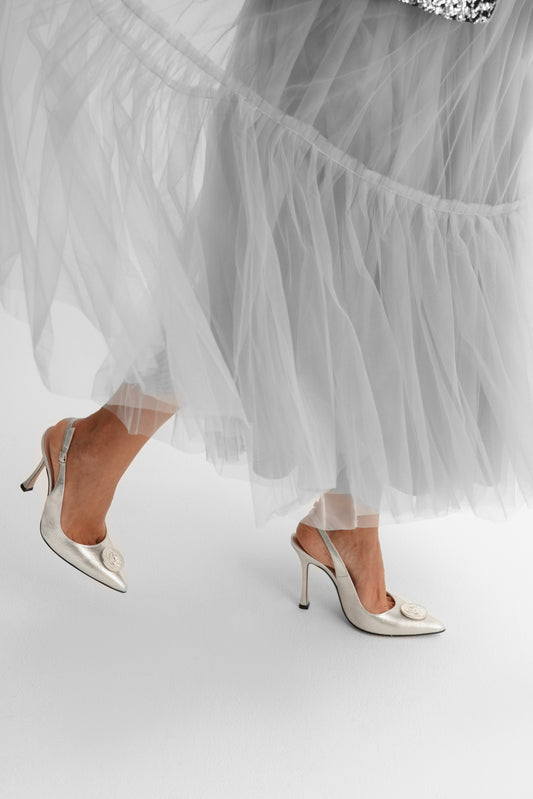 Escarpins Slingback Argenté Impératrice - Ornée D’or Blanc