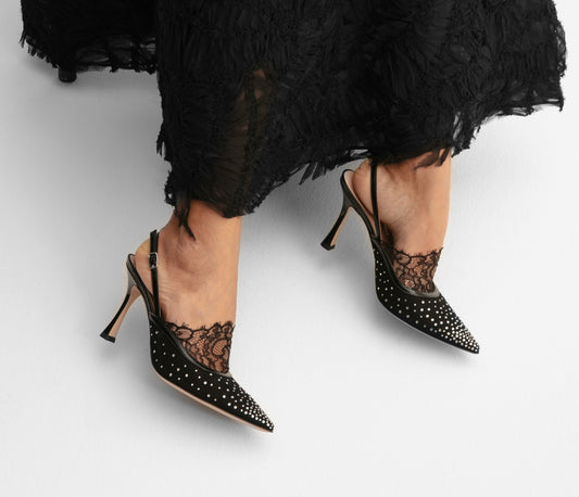 Escarpins Slingback Noir Madame - Dentelle De Calais