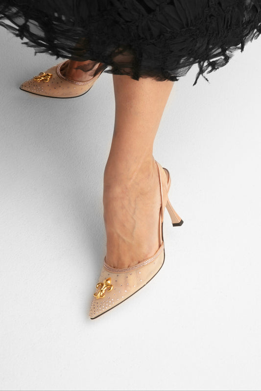 Escarpins Slingback Rose Ma Reine - Ornée D’or 24 Carats
